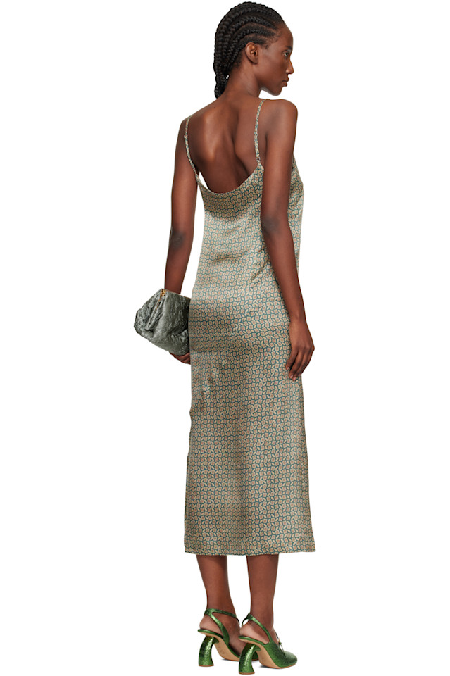 Dries Van Noten Зеленое миди-платье с ромбовидным узором