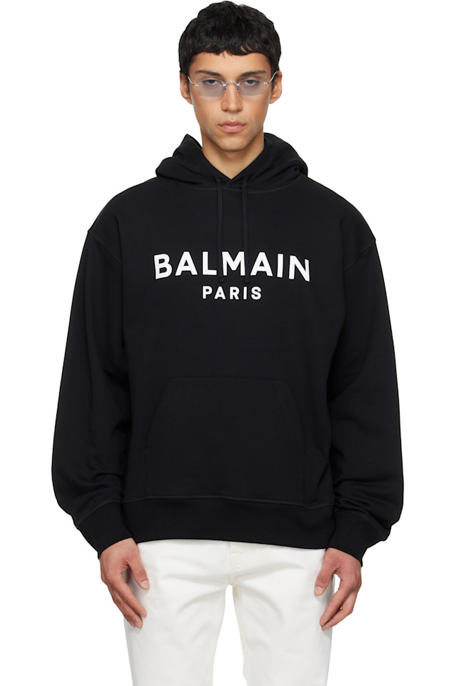 Худи из хлопка с принтом Balmain, черный 82 573₽