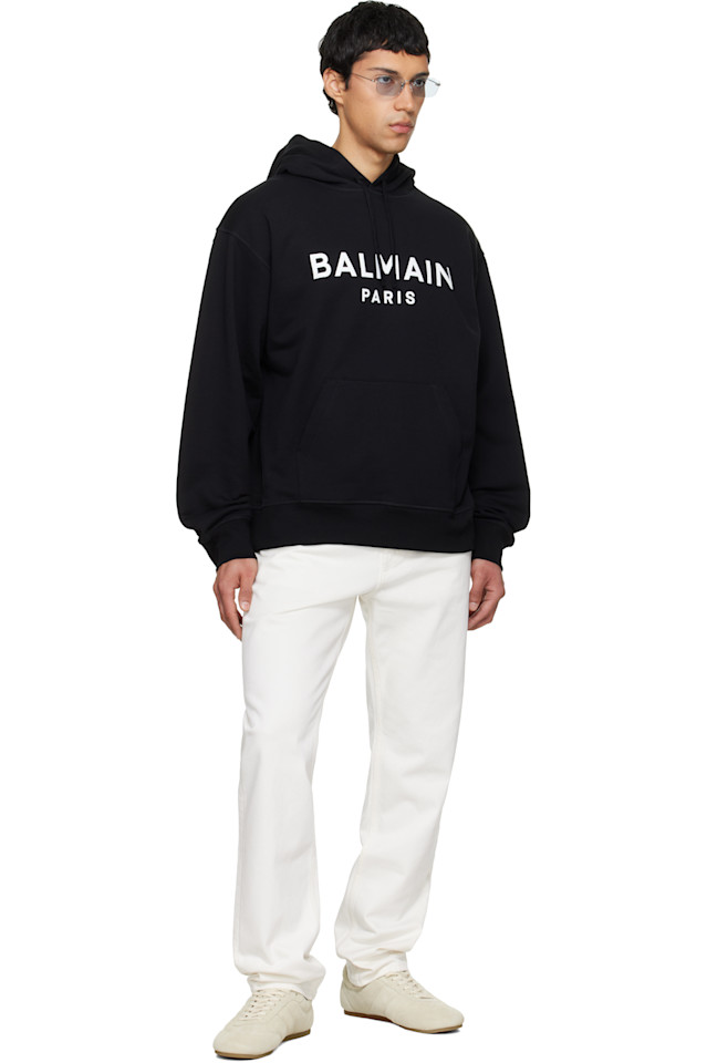 Худи из хлопка с принтом Balmain, черный