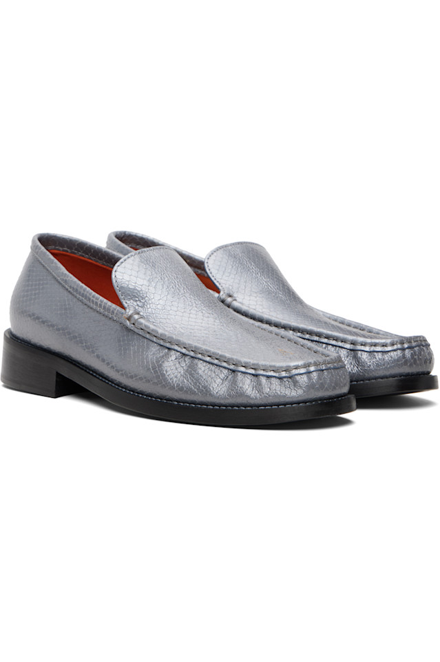 Лоферы из телячьей кожи с тиснением под змеиную кожу.