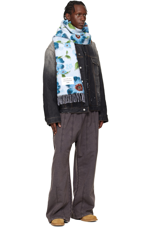 Шерстяной шарф с бахромой Acne Studios, синий 72 122₽