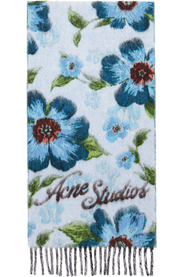 Шерстяной шарф с бахромой Acne Studios, синий