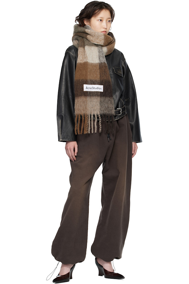 Acne Studios Коричневый мохеровый клетчатый шарф