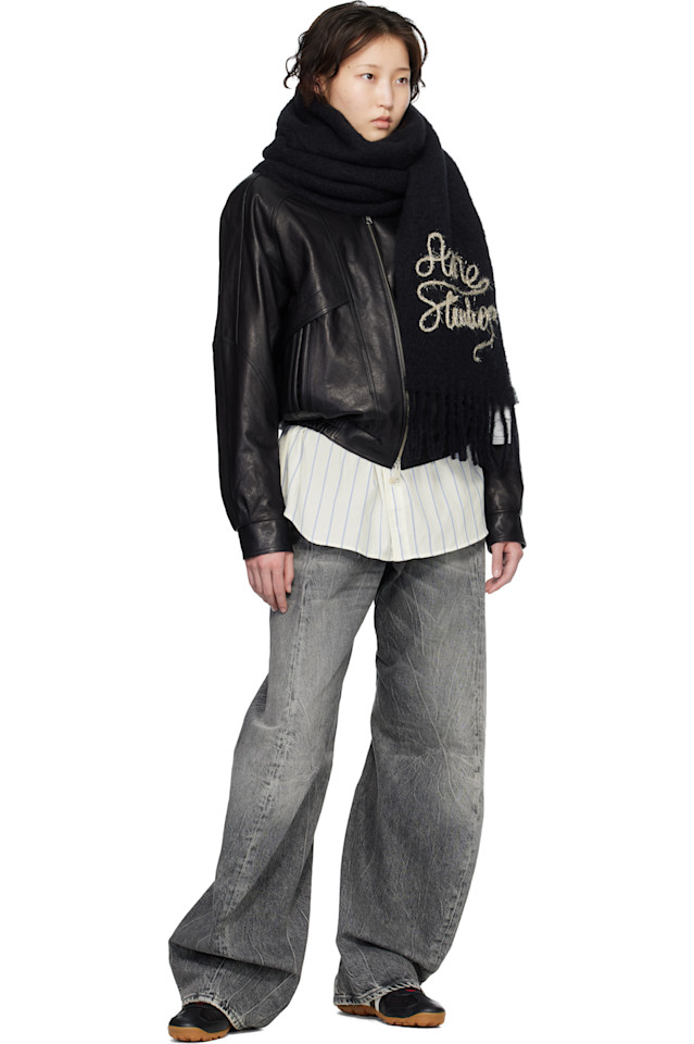 Шерстяной шарф с логотипом Acne Studios, черный