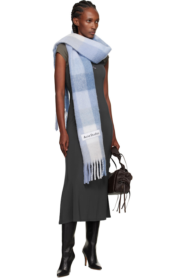 Acne Studios Сине-Белый клетчатый шарф из мохера