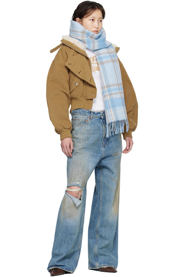 Acne Studios Синий шарф с бахромой и логотипом