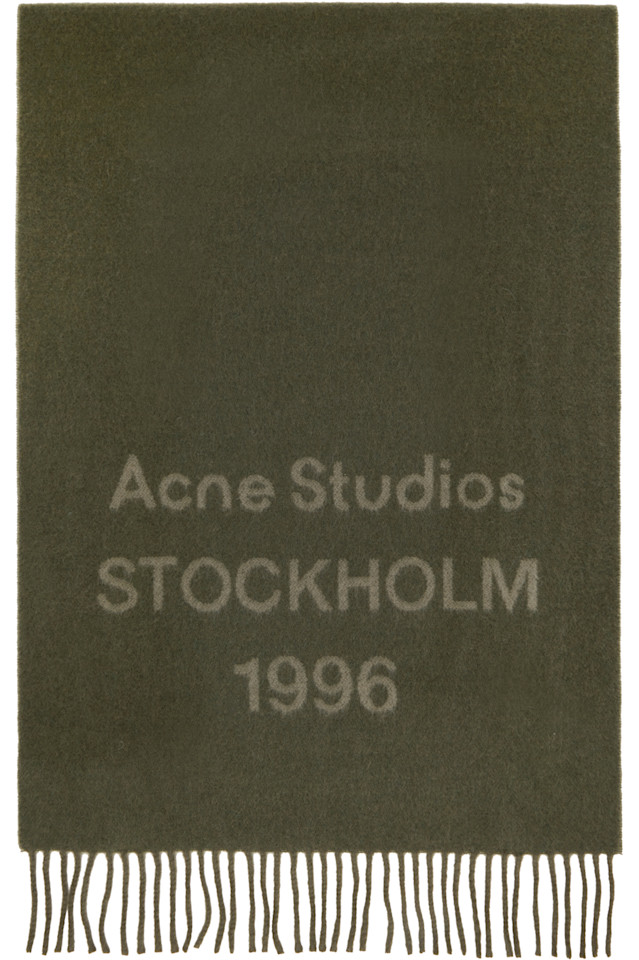 Acne Studios Широкий шарф цвета хаки с логотипом