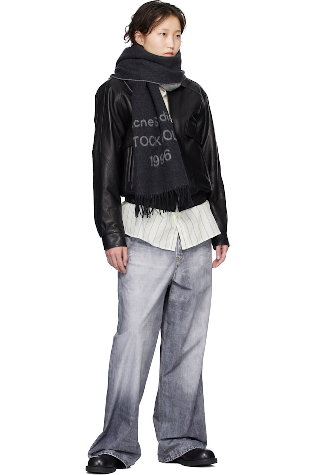 Acne Studios Широкий шарф с серым логотипом