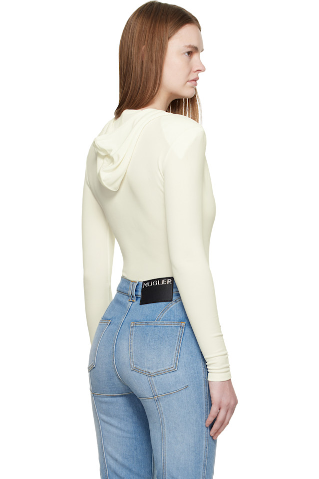 Mugler Боди Off-White с капюшоном и V-образным вырезом