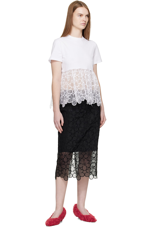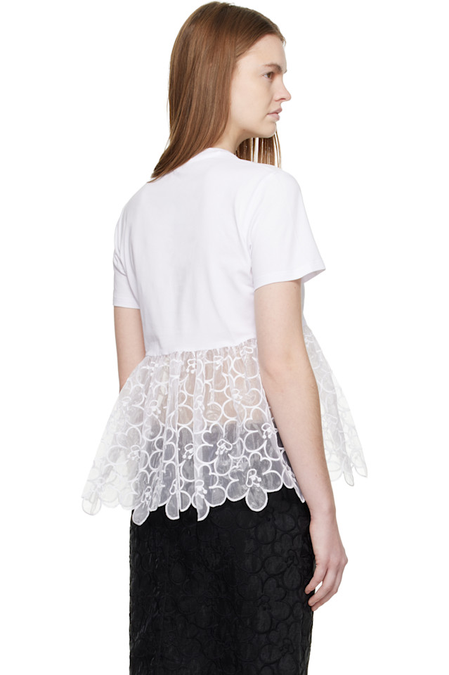 Футболка из эластичного хлопкового трикотажа и органзы из смесовой хлопковой ткани.