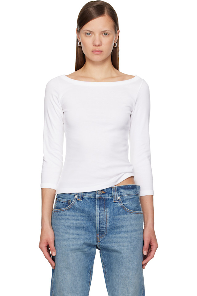 Вырез-лодочка и манжеты из ребристой вязки.
