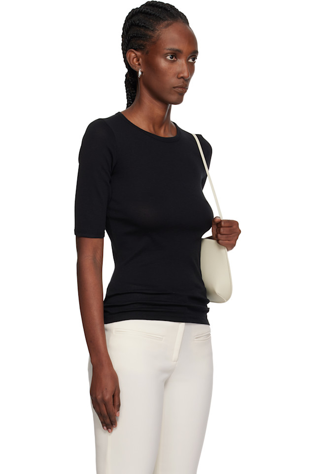 Легкая футболка из органического хлопкового трикотажа. Круглый вырез и манжеты в рубчик.