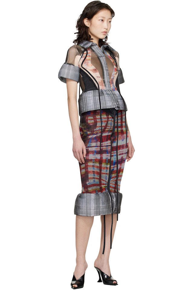 Клетчатый узор и стеганая отделка по всей поверхности.