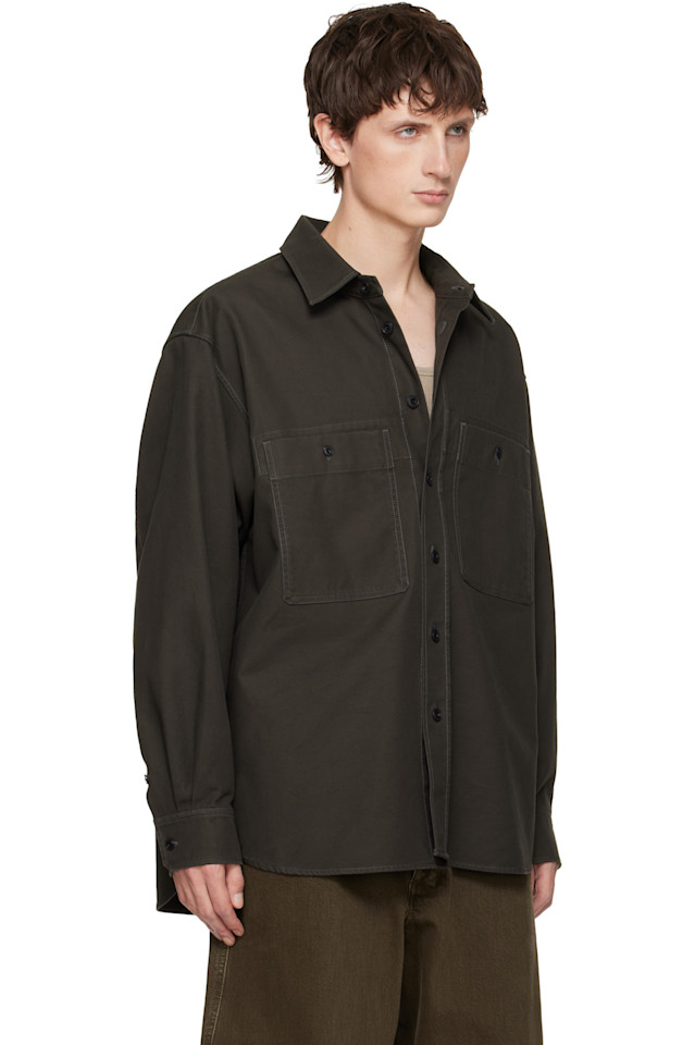 Lemaire Рубашка в стиле милитари цвета хаки