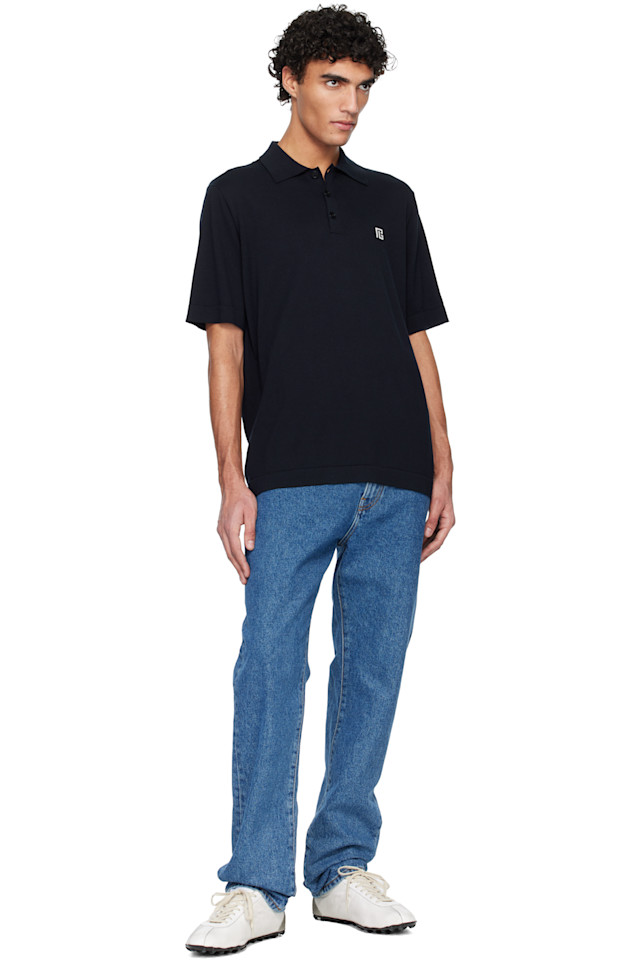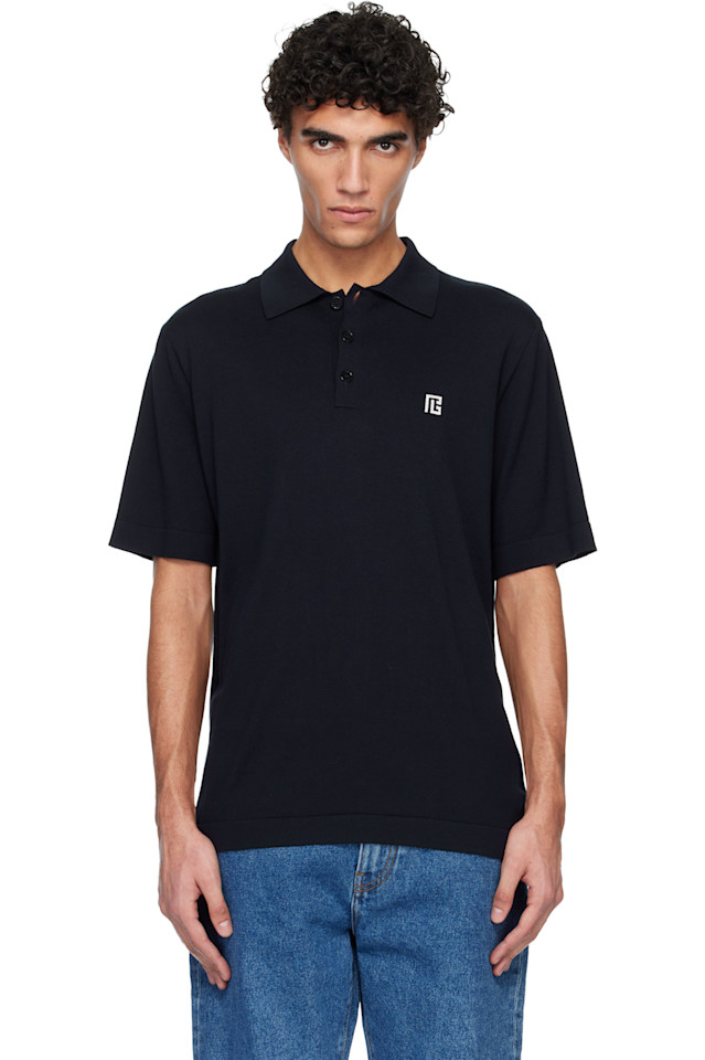 Вышитая хлопковая рубашка поло Balmain, темно-синий