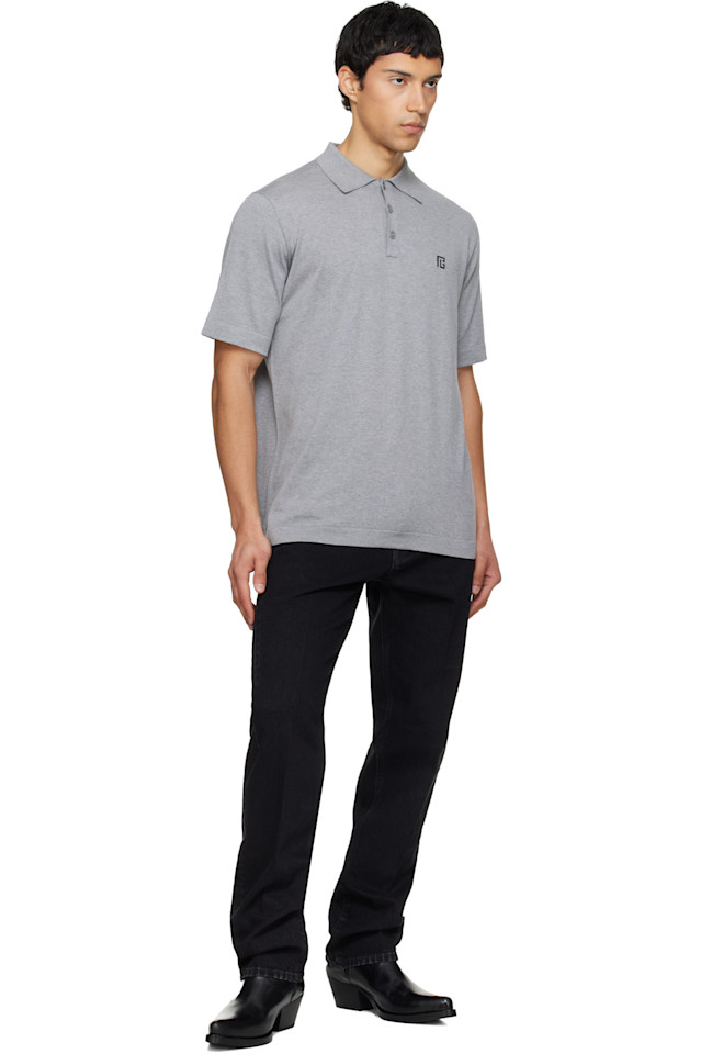 Balmain Серая хлопковая рубашка поло с вышивкой