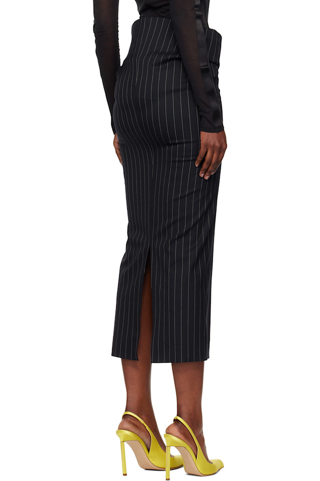 Mugler Темно-Синяя полосатая эластичная юбка-миди
