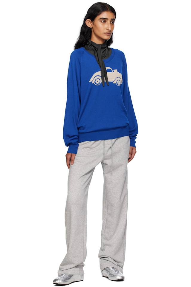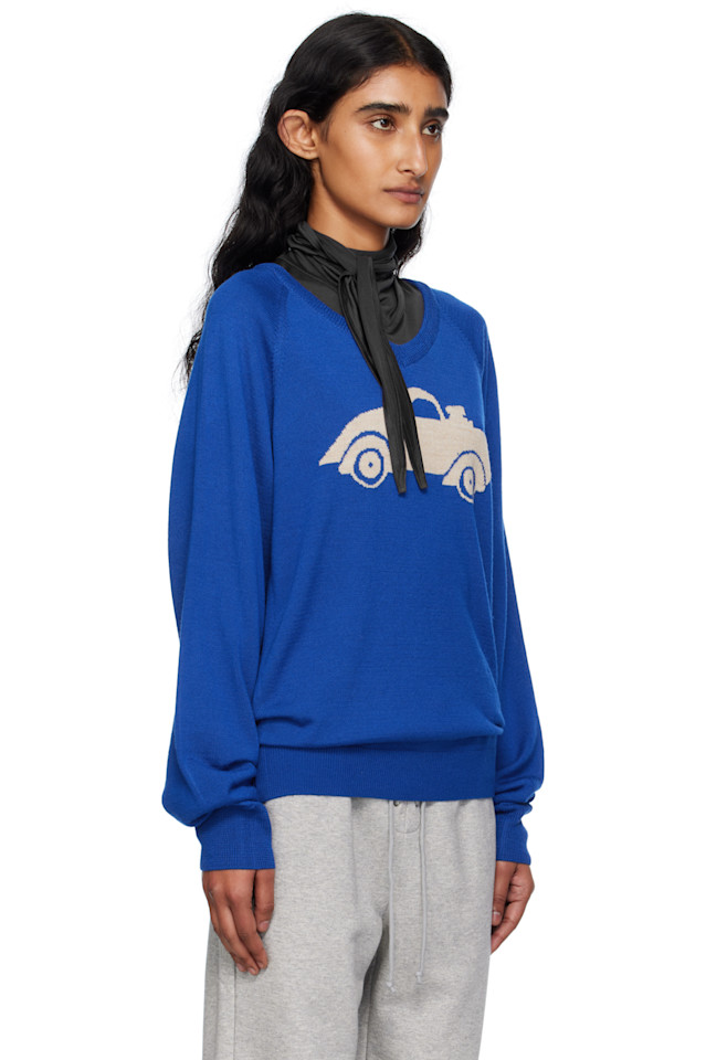 Вязаный свитер с автомобильным рисунком Open Yy, синий