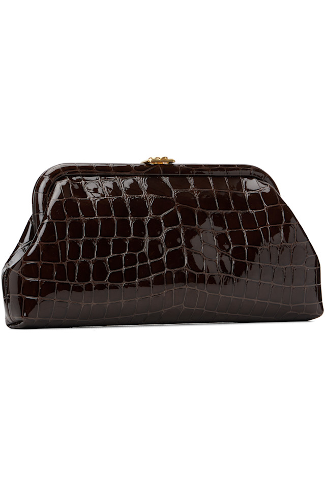 Клатч из лакированной кожи с тиснением под крокодила.