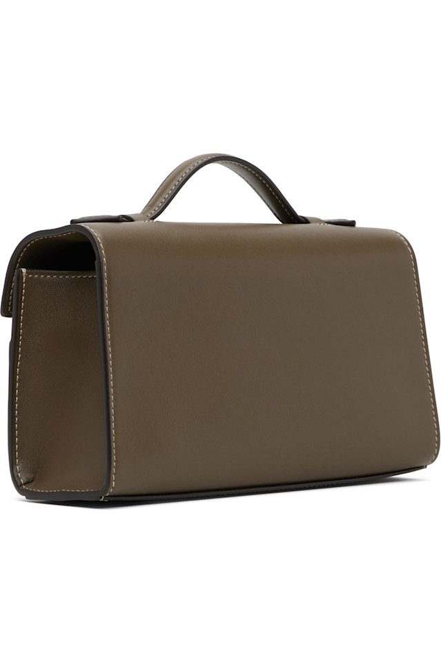 Жесткая сумка из полированной телячьей кожи с верхней ручкой.