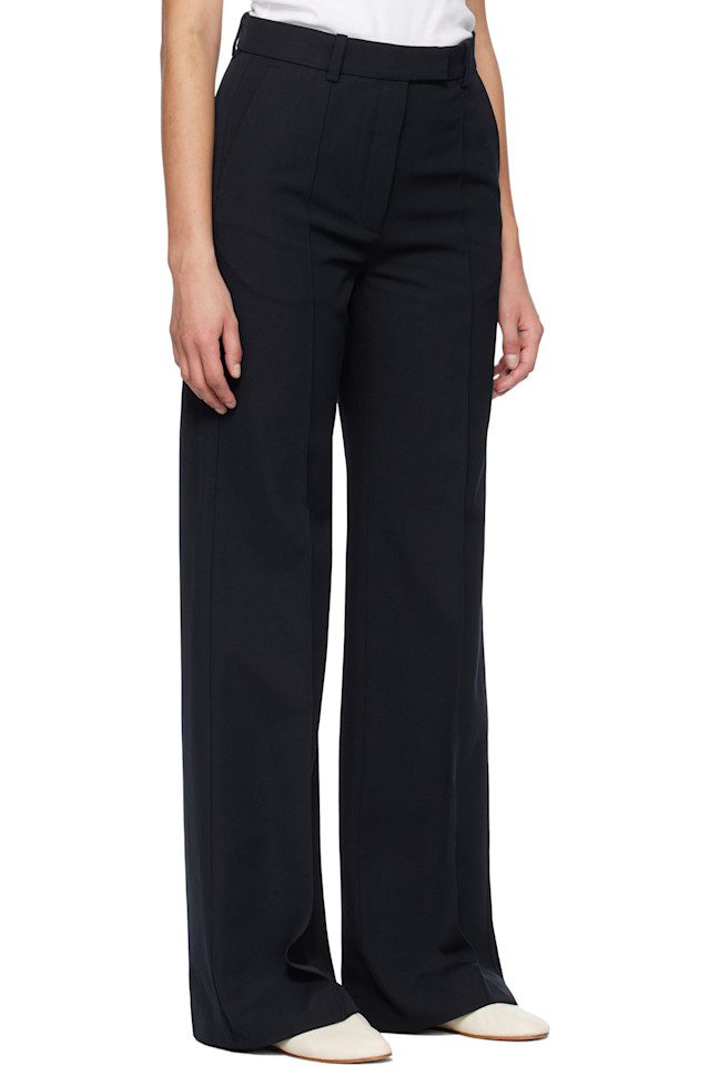 Брюки из эластичной саржи из смеси хлопка и шерсти.
