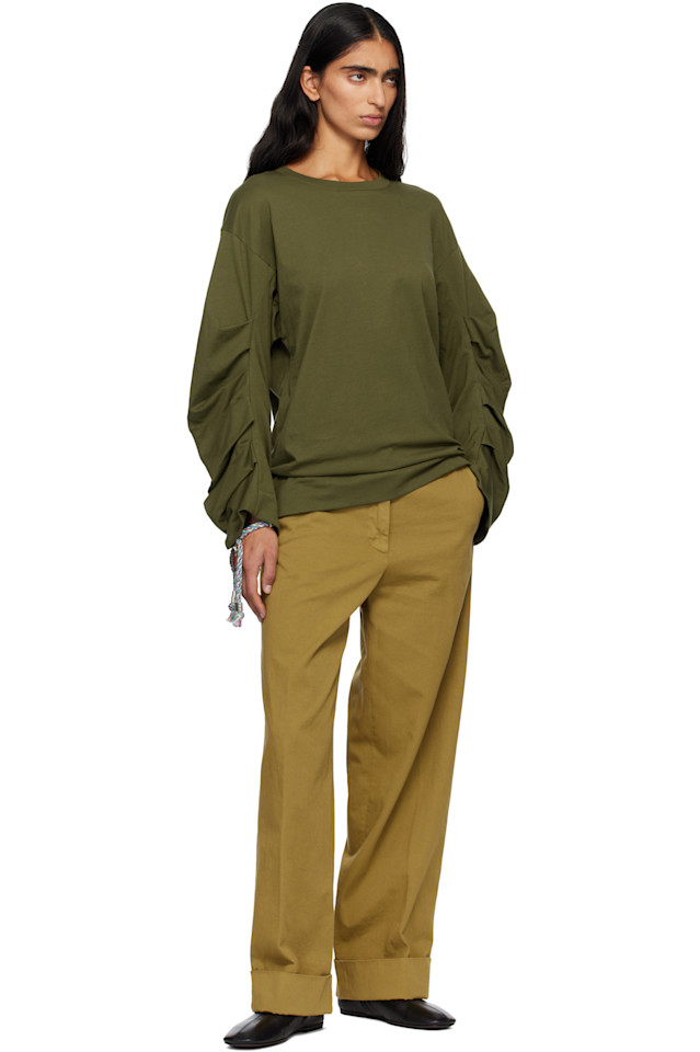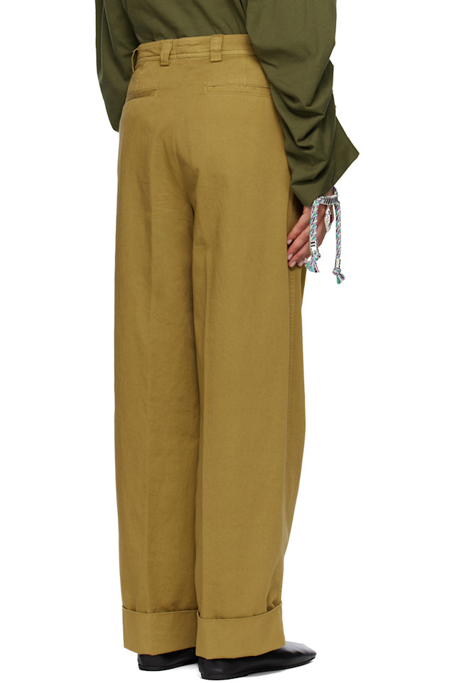 Хлопковые брюки с манжетами Dries Van Noten, хаки 30 290₽