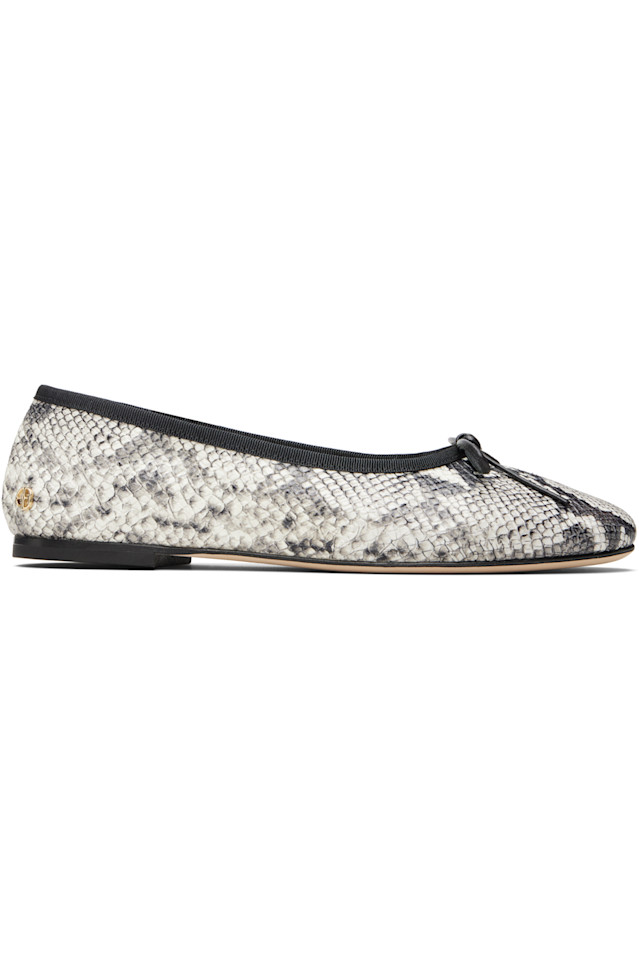 Балетки из кожи с тиснением под змеиную кожу.