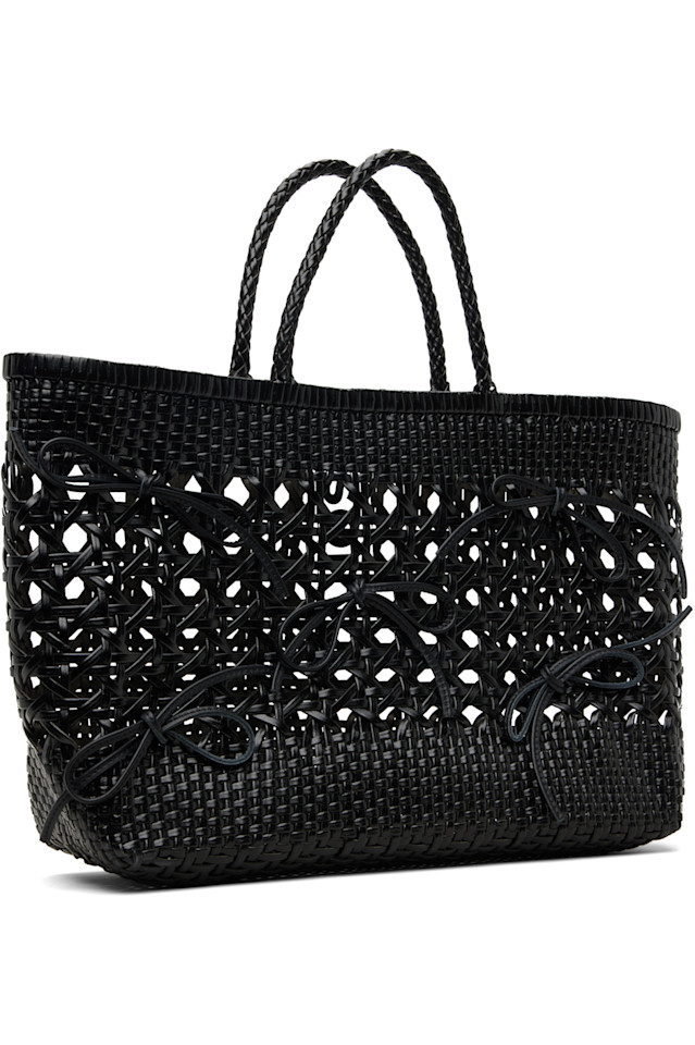 Сумка-тоут из переработанной кожи, сплетенная в плетеную корзину.