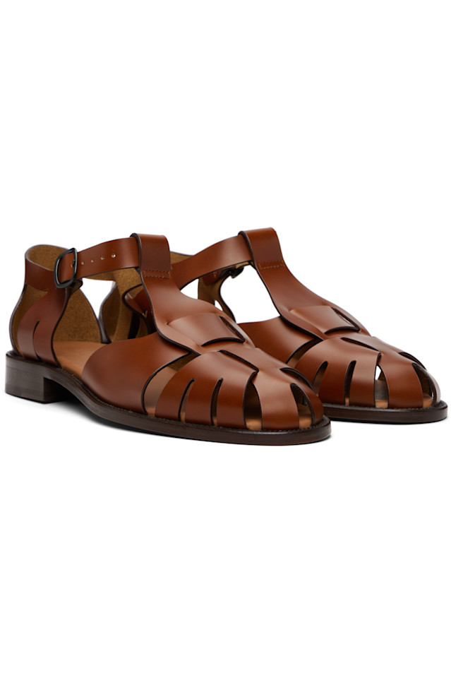 Сандалии в рыбацком стиле из полированной телячьей кожи.
