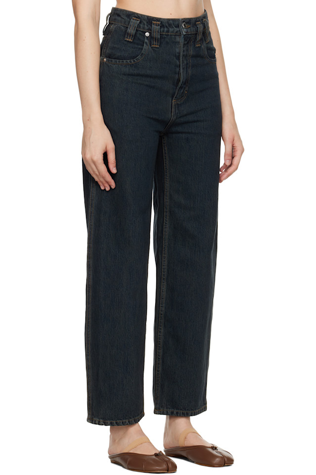 Джинсы из неэластичного денима плотностью 14 унций с эффектом потертости.