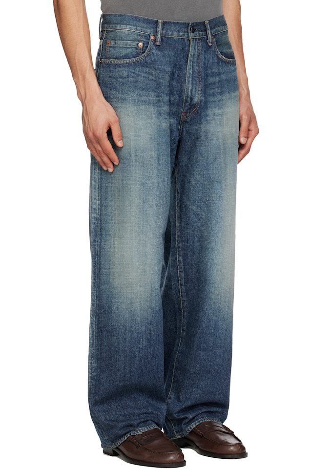 Джинсы из неэластичного денима с кромкой, окрашенные методом «веревочного окрашивания».