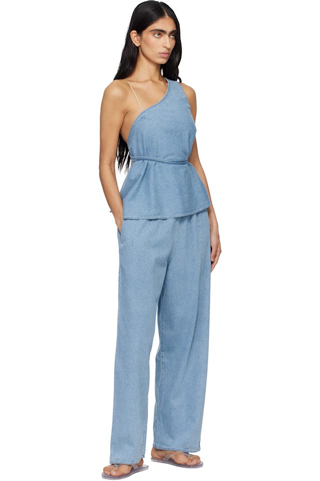 Джинсы из неэластичной джинсовой ткани, сертифицированной по стандарту OEKO-TEX, состоящей из смеси натурального шелка и хлопка.