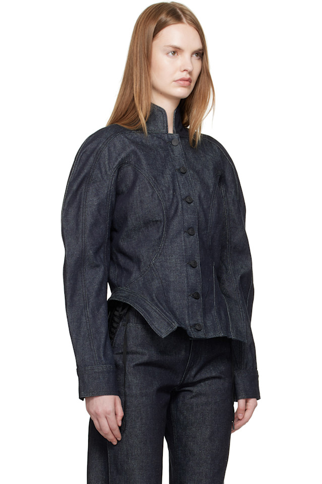 Mugler Джинсовая куртка с рельефным рисунком цвета индиго