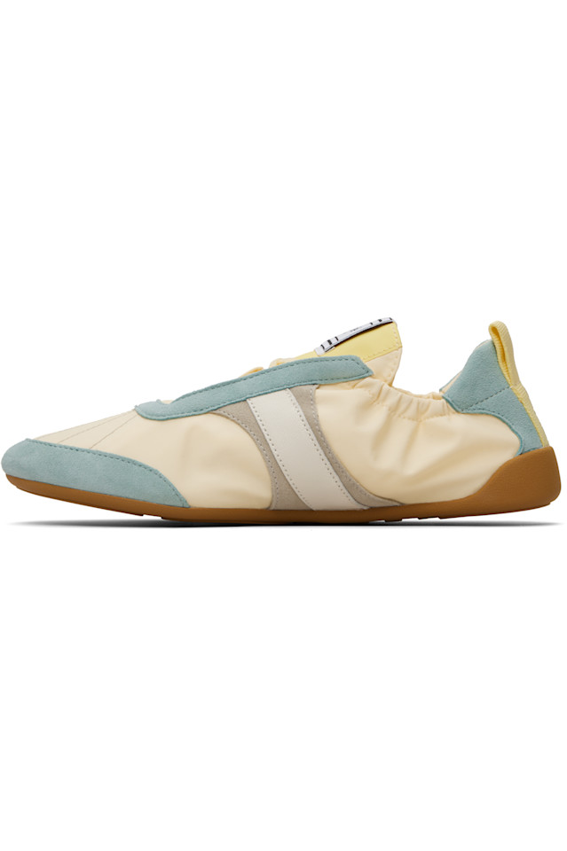 Низкие кроссовки из нейлоновой тафты, козьей замши и полированной овчины.