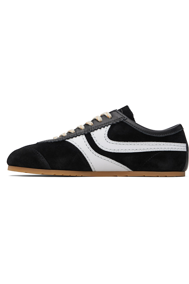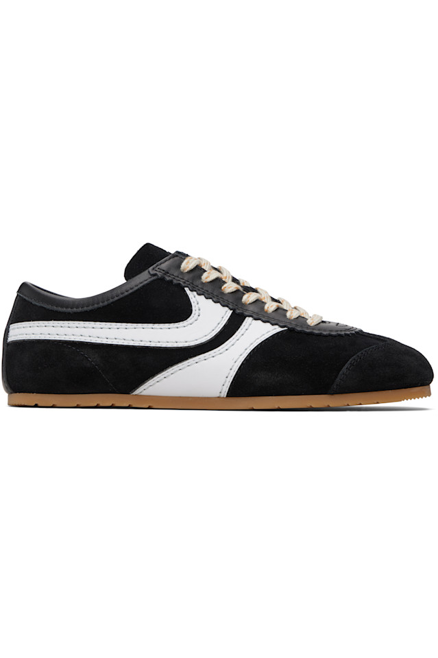 Низкие кроссовки из телячьей замши и полированной кожи наппа.