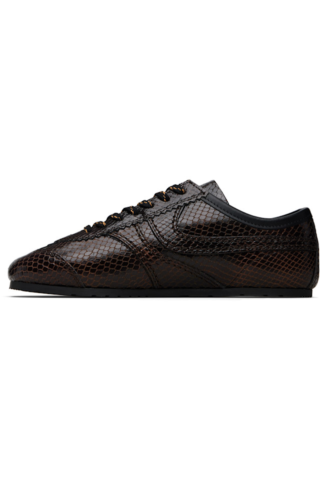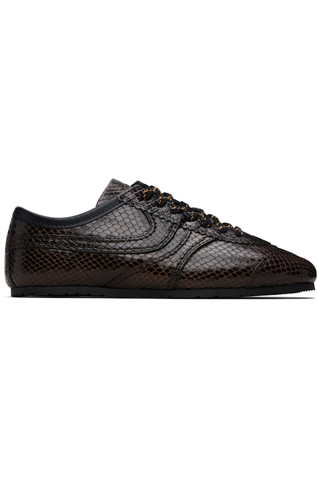 Низкие кроссовки из телячьей кожи с тиснением под змеиную кожу.