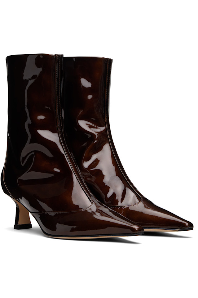Ботильоны из лакированной телячьей кожи до щиколотки.
