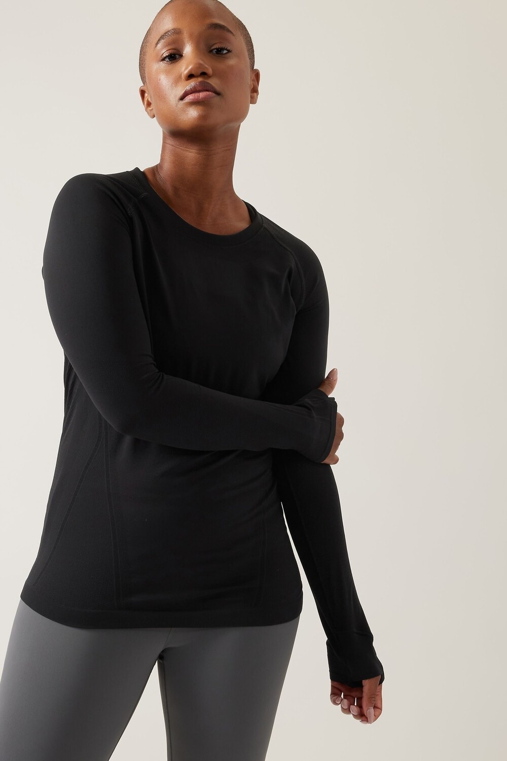 Бесшовный топ Momentum с длинными рукавами Athleta, черный 9 590₽