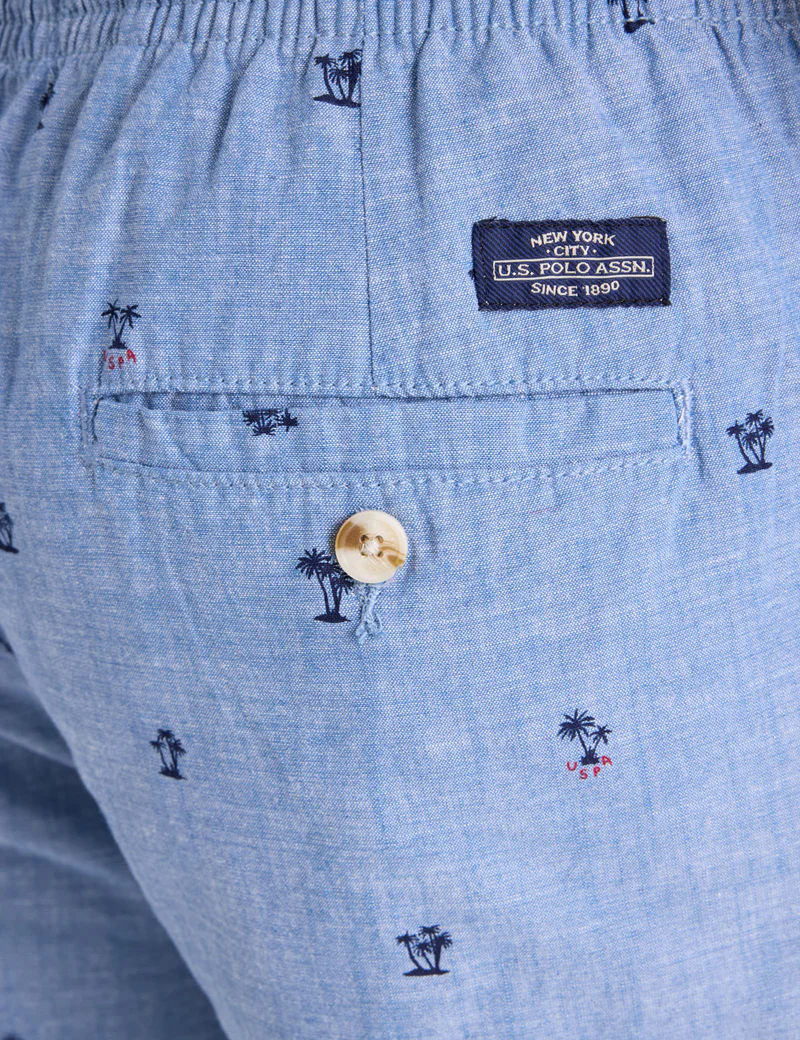Почувствуйте себя уверенно в этих легких спортивных шортах с принтом и завязками от US Polo Assn. Эти легкие шорты, созданные для свободы движений и повседневной носки, украшены принтом в виде пальм, вдохновленным прибрежной тематикой, который добавит вашему образу атмосферы отпуска. Эластичный пояс с регулируемым шнурком обеспечит комфорт в течение всего дня, а боковые и задние карманы сделают их функциональными.
