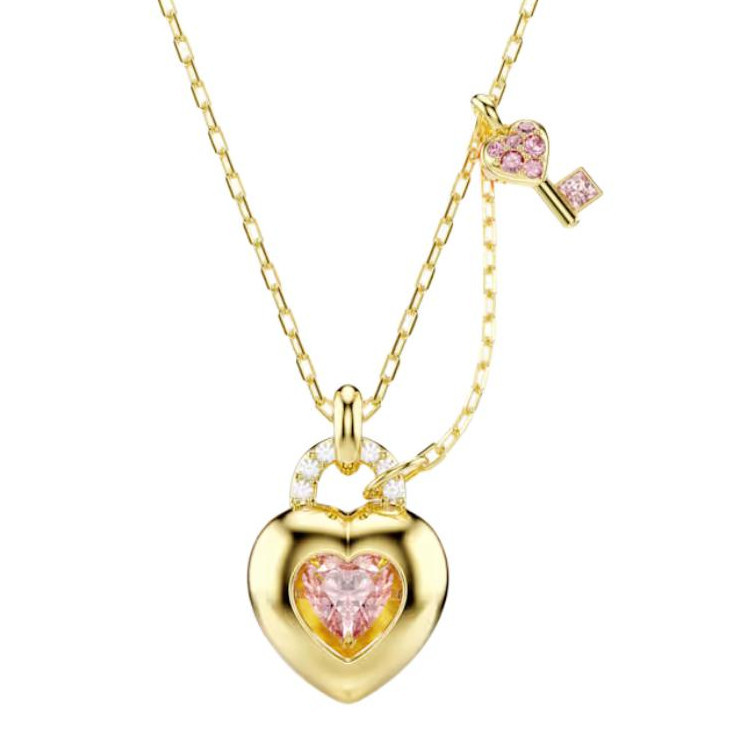Колье-сердечко с ключом Swarovski, розовый