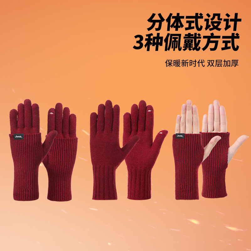 Jeep Перчатки вязаные Wool/Cashmere Women's Red