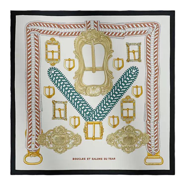 HERMES Шелковый платок Women's Black/White/Gold