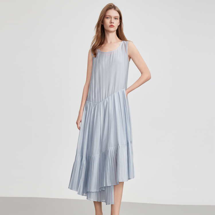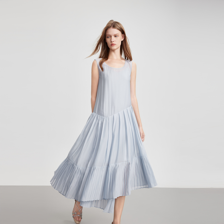 ELLE Слип-платье Women's Gray Blue Crew Neck Moderate Long