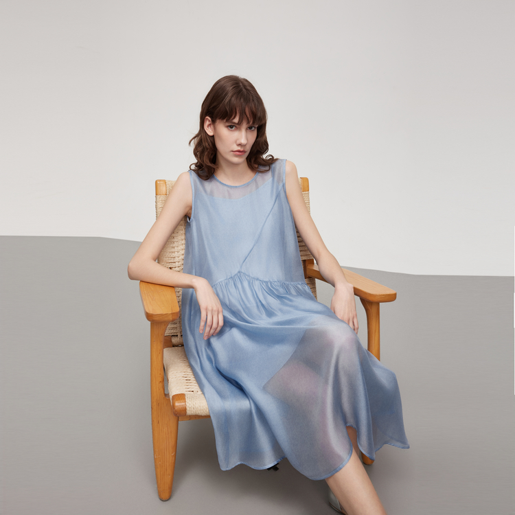 ELLE Женское синее платье без рукавов