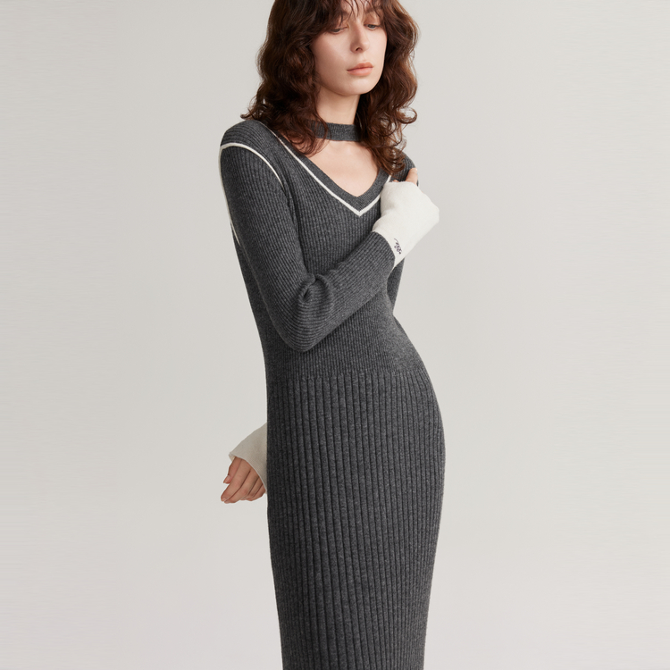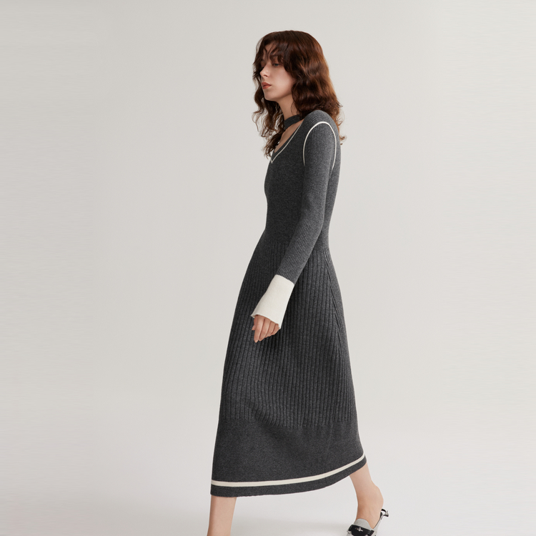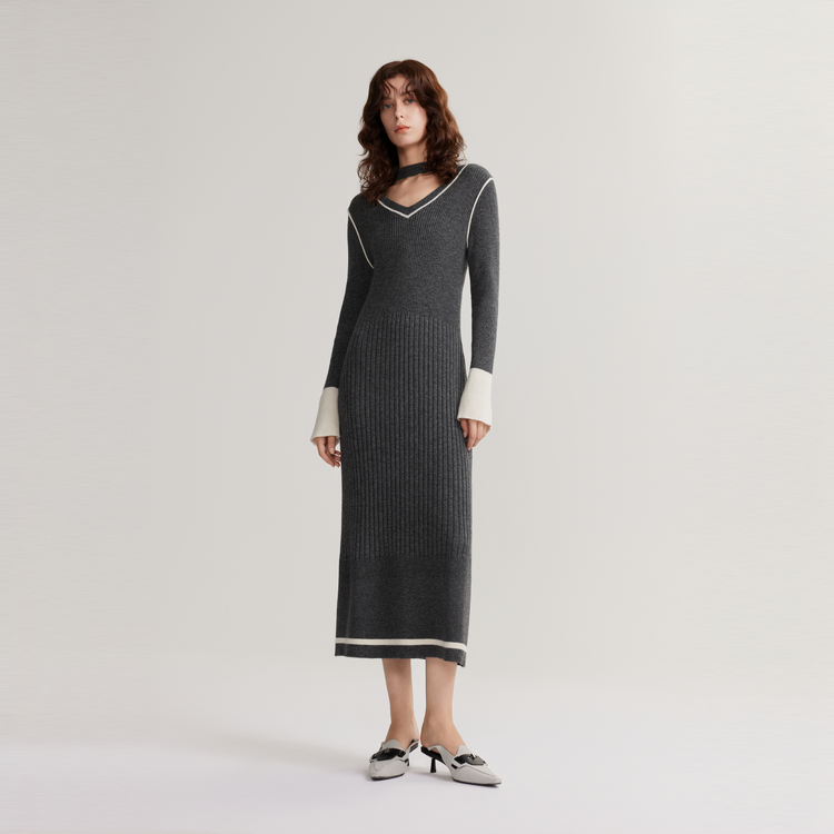 ELLE Платье с длинным рукавом Women's Dark Gray