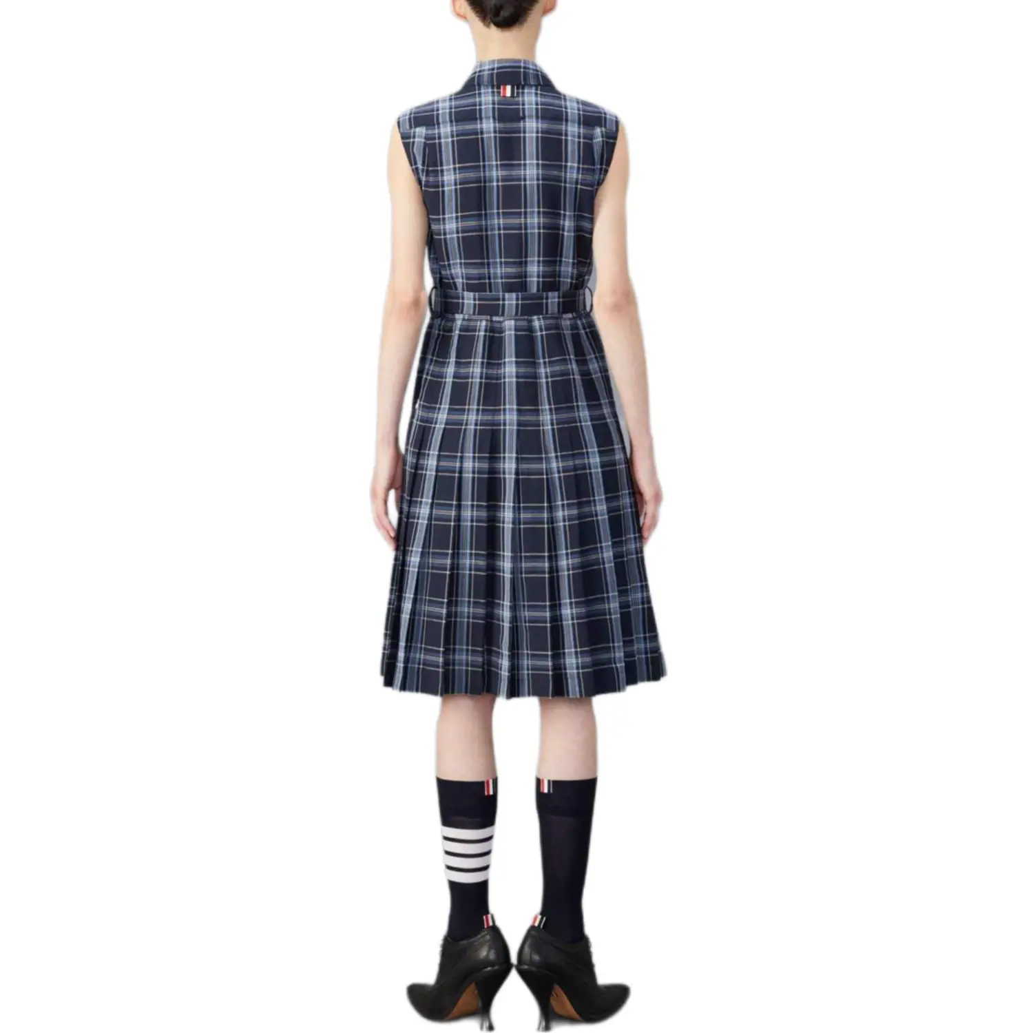 Клетчатое плиссированное платье-рубашка THOM BROWNE, marine синий