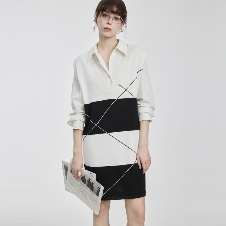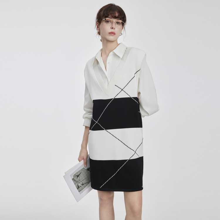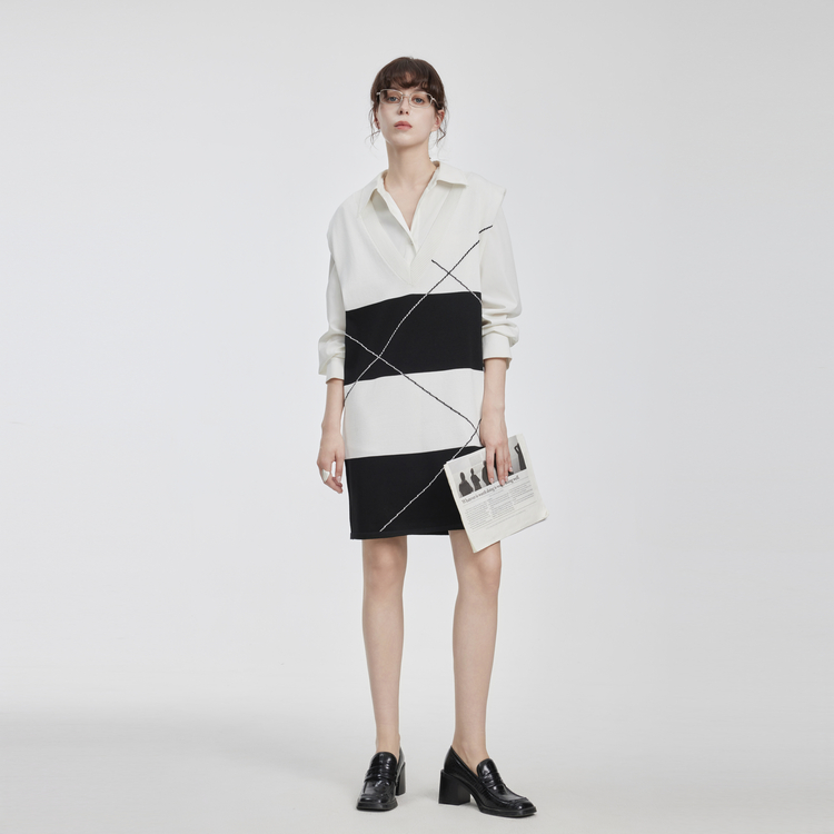 ELLE Платье с длинным рукавом Women's Black White