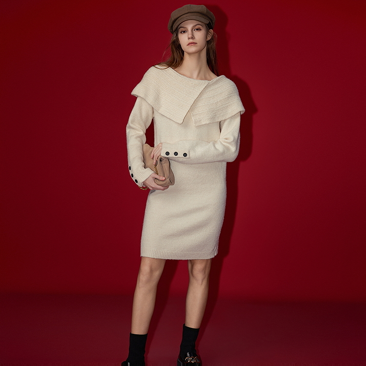 Платье с длинным рукавом весеннее Women's ELLE, red