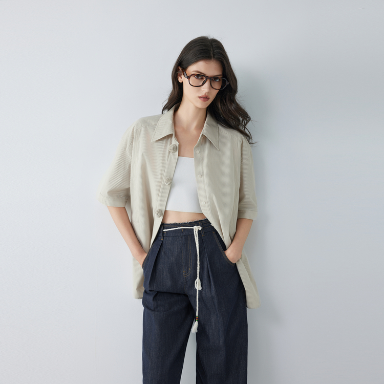 ELLE Рубашка Women's Stripes Lapel Moderate