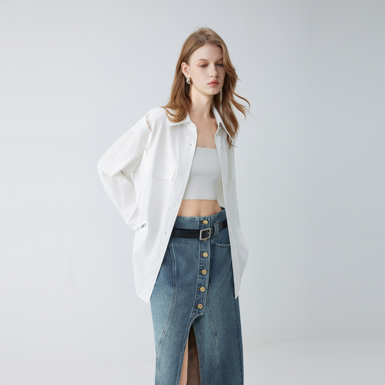 ELLE Рубашка Women's White Lapel Moderate